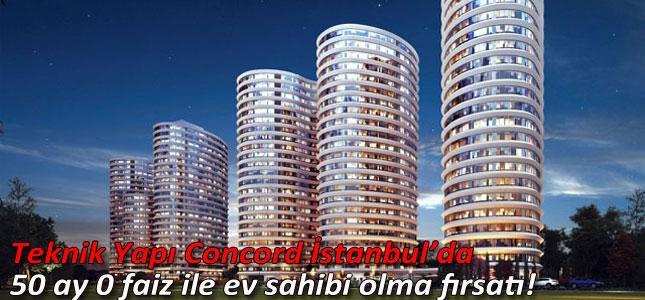 Concord İstabul'da yüzde 10 peşinat, 50 ay vade farksız taksit imkanı ile ev sahibi olmak mümkün.