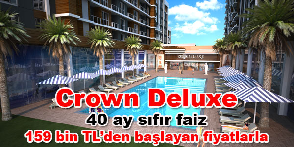 Estetik mimari tasarımı ferah iç mekânlarla buluşturan CROWN DELUXE, strain gain sistemiyle zemin güçlendirme çalışmalarının en yüksek seviyede yapıldığı, imalatında c-40 sınıfı betonun kullanıldığı yapıda daire içlerinde, ahşap lamine parke, tekstil bazlı ithal duvar kâğıdı, akrilik tezgâhlar ile birinci sınıf ince işçilik ve malzeme kullanılıyor. Daire planlamalarında, net tavan yüksekliğinin 2.96 olduğu ve geniş teras alanlarına yer verilen projede, 35 m2 teras alanlar bulunuyor.