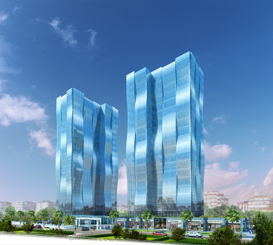 Deniz dalgasından esinlenerek tasarlanan proje, dalgaların zeminden itibaren dikey yükselerek bulutları yakaladığı 22’şer katlı 2 kuleyi işaret ediyor. Dış yüzeyde camların yansıma hareketleriyle kuvvetlenen mavilik, sonsuz deniz ve gökyüzü manzarasıyla kucaklaşıyor. Adalar, havuz, bahçe ve şehir manzarasıyla bütünleşiyor.
