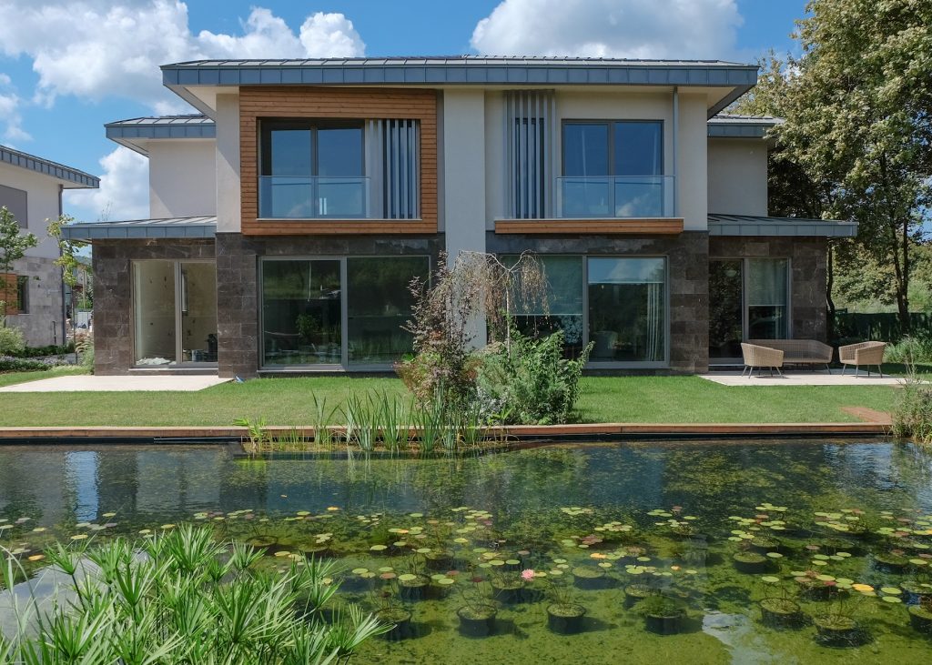 Konutların, 141 ile 200 metrekare arasında değiştiği projede tüm evlerin 40 ila 200 metrekare arasında değişen bahçeleri ve biyolojik gölete kıyısı bulunuyor.
