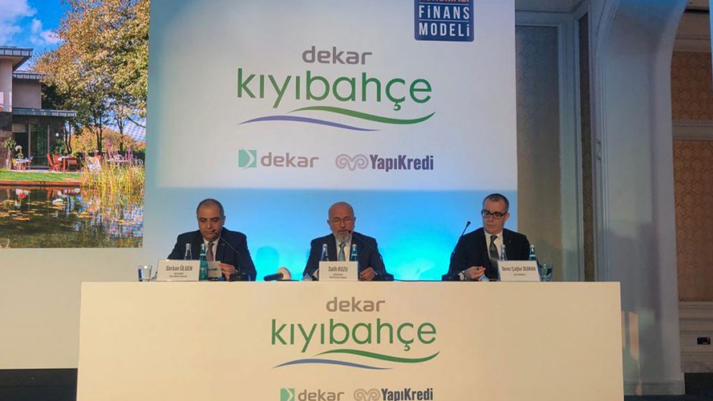 Yapı Kredi Genel Müdür Yardımcısı Serkan Ülgen ise ‘Türkiye’nin ilk özel bankası Yapı Kredi olarak 75. yaşımızı kutladığımız 2019 yılında, konut finansmanında da yeni bir ilke imza atmanın gururunu yaşıyoruz. Ödeme Korumalı Finans Modelimiz kapsamında Dekar Yapı’nın Kıyıbahçe projesinden gayrimenkul satın alan tüketicilerin peşin ya da kredili olarak yaptıkları alım bedelleri üzerinde Yapı Kredi’nin blokesi olacak. Satın alınan gayrimenkul bedelleri üzerindeki blokaj, proje ilerledikçe, ilerleme aşamasına göre parça parça kaldırılacak. Böylece, projenin sağlıklı bir biçimde tamamlanması güvence altında olacak . Yapı Kredi ile Türkiye’de ilk kez uygulanacak olan bu finansman modeli gayrimenkul sektöründe bugüne kadarki uygulamaları değiştiriyor. Bu iş birliği ile Türkiye’de konut alanında yarattığımız yeni finansman alternatifinin sektörde örneklerinin artarak çoğalacağına inanıyorum” dedi.