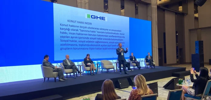 “Konuta erişim hakkı diye bir kavram var dünyada. Bazı katılımcılarımız dediler ki; ‘Bazı ülkeler vatandaşına konut ya da barınma hakkı sağlamak zorunda.’ Peki Türkiye böyle mi? Konut hakkı, kişilerin bir konut edinme hakkı olarak ifade edilir. Barınma hakkı da bir yerde oturabilme hakkıdır. İkisi bağlantılı ama farklı durumlar. Bu milletlerarası sözleşmelerde de geçmiş bir durum.