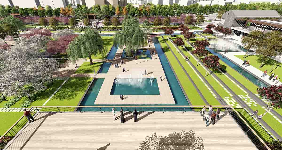 Millet bahçesi içinde millet kıraathanesi, peyzajlı yeşil alanlar, yürüyüş parkurları, piknik alanları, bisiklet ve koşu yolları ile çocuklar için oyun alanları, spor sahaları, kitapçılar çarşısı, seyir balkonu, sıfır atık geri dönüşüm parkı, gramine bitkiler bahçesi,kaskatlı soğanlı bitkiler bahçesi, tematik bahçeler, yansıtma ve oyun havuzları, ahşap iskele inşa edilecek.