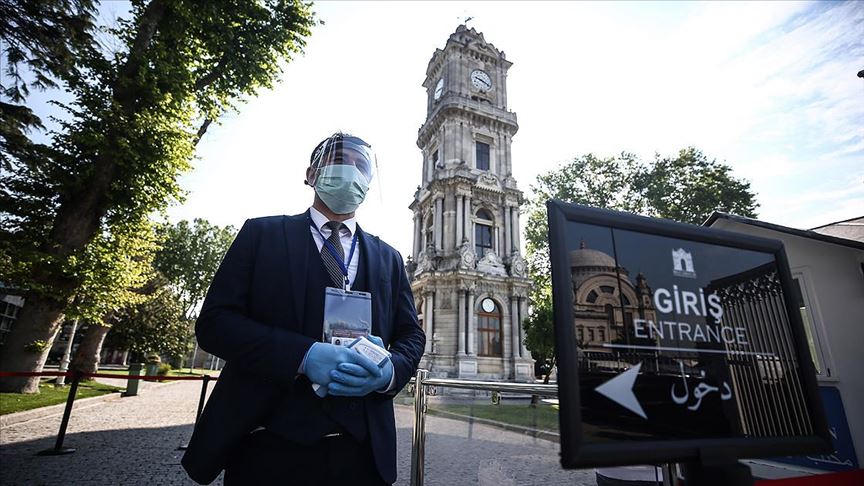 Ziyaretçi ile doğrudan temas kuran Milli Saraylar personeline maske, eldiven, siperlik ve dezenfektan kullanımı zorunlu hale getirildi.