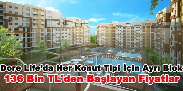 Dore Life projesinde 1+1 daireler 136 Bin TL'den, 2+1 daireler 245 Bin TL'den, 3+1 daireler 335 Bin TL'den, 4+1 daireler 510 Bin TL'den başlayan fiyatlarla satışa suluyor.AC Yapı'nın kendi bünyesideki kredilendirme sistemi ile 48 ay %0,99 faizle vadelendiriliyor.