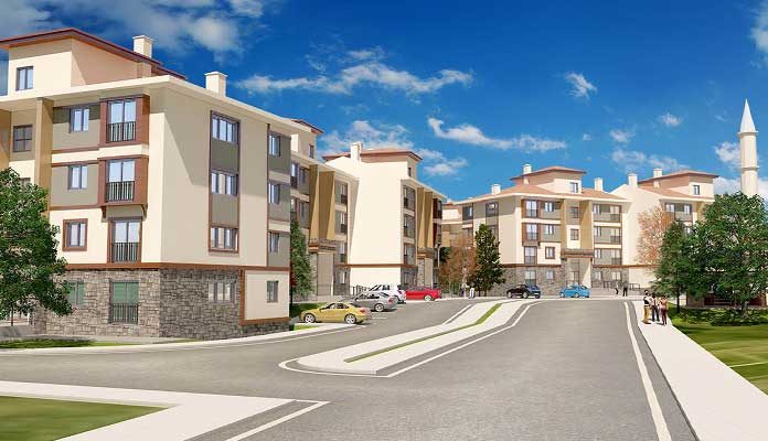 Dış cephelerinde zemin kat seviyesinde yöresel taş kaplamalar, ahşap görünümlü kaplamalar, kat silmeleri, payandalar, cumba görünümlü çıkmalar ve söveler kullanılacak olan projenin ihale kapsamında dairelerin yanı sıra bir cami ve çevre düzenlemesi ile alt yapı çalışmaları da bulunuyor.