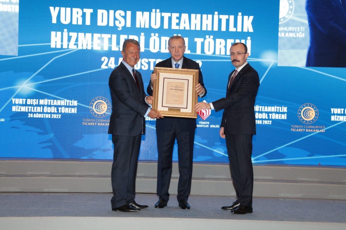 Küresel çapta yakından takip edilen Engineering News Record (ENR) Dergisi’nin 2020 ve 2021 yıllarına ait “Dünyanın En Büyük 250 Uluslararası Müteahhidi” listelerinde yer alan 48 Türk müteahhitlik firması ile “Dünyanın En Büyük 225 Uluslararası Teknik Müşavirleri” listelerinde yer alan 6 Türk teknik müşavirlik firması için düzenlenen törende, firma temsilcileri ödüllerini Cumhurbaşkanı Recep Tayyip Erdoğan’ın elinden aldı.