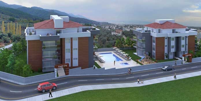 Aydın’ın Kuşadası ilçesi Davutlar mevkiinde 2 bin 500 metrekarelik arsa üzerinde Kartallar Yapı tarafından hayata geçirilmekte olan Eagle City projesi 3 katlı 2 bloktan meydana geliyor.