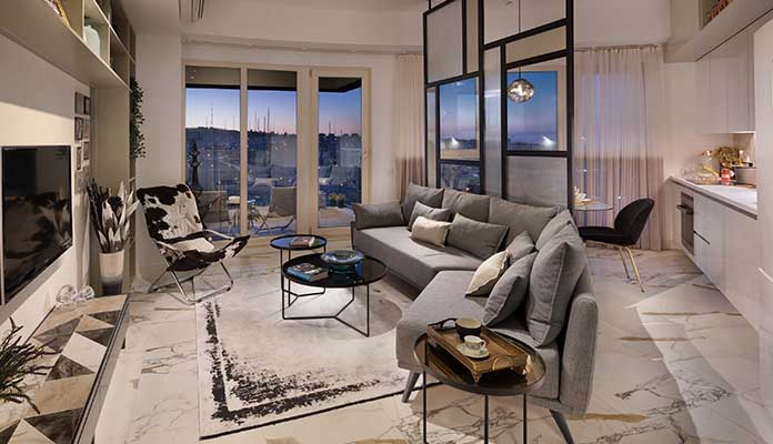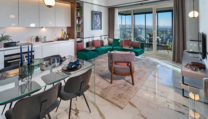 Büyüklükleri 73 ile 215 metrekare arasında değişen ve stüdyodan 4+1’e kadar farklı tip ve kat planlarında 892 konuttan ve benzersiz sosyal donatı alanları ile temalı keyifli yaşam alanlarından meydana gelen Ege Vadisi’nin zarafet ve konforun birleştirilerek tasarlanarak ödüle layık bulunduğu örnek dairesinde sıcak ve yumuşak renkli taş dokunun bej ve uçuk gri tonları, tüm ürün ve renk seçimlerine yansıtıldı. Dairelerin iç tasarımı Ege yaşam biçiminin geniş alan kullanımından ilham alınarak size özel konforlu bir yaşam hazırlandı.
