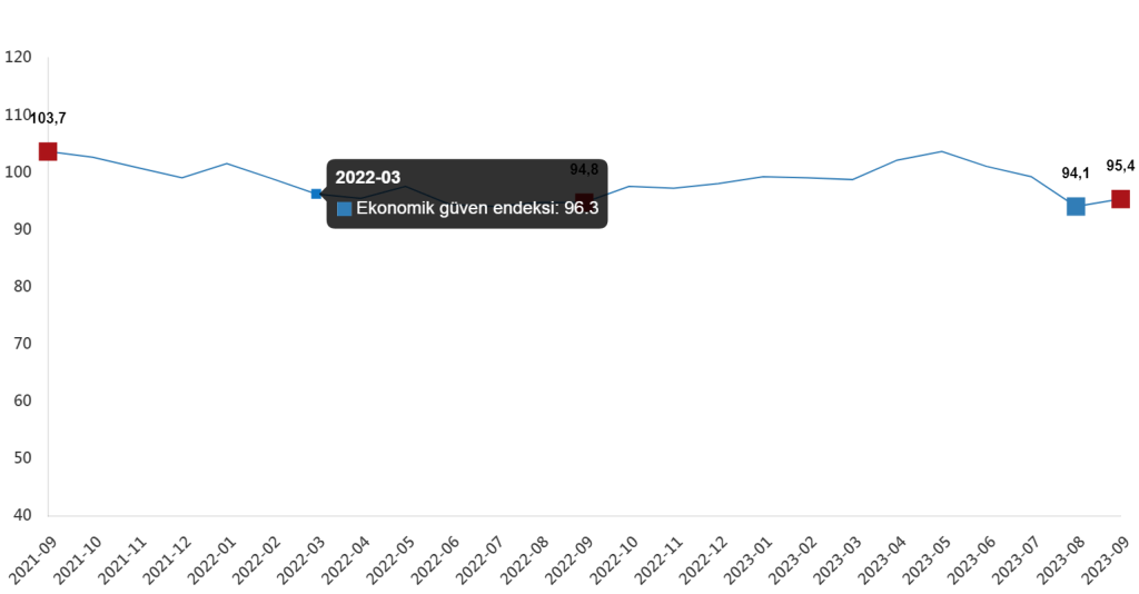 Türkiye İstatistik Kurumu (TÜİK) tarafından açıklanan Eylül ayı Ekonomik güven endeksi 95.4 oldu.