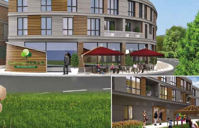 İstanbul’un Eyüp ilçesi Mimar Sinan mahallesinde Elmas Otomotiv İnşaat tarafından hayata geçirilen Elmas Teras Kemerburgaz projesi yatay mimaride 3 katlı 2 bloktan meydana geliyor.