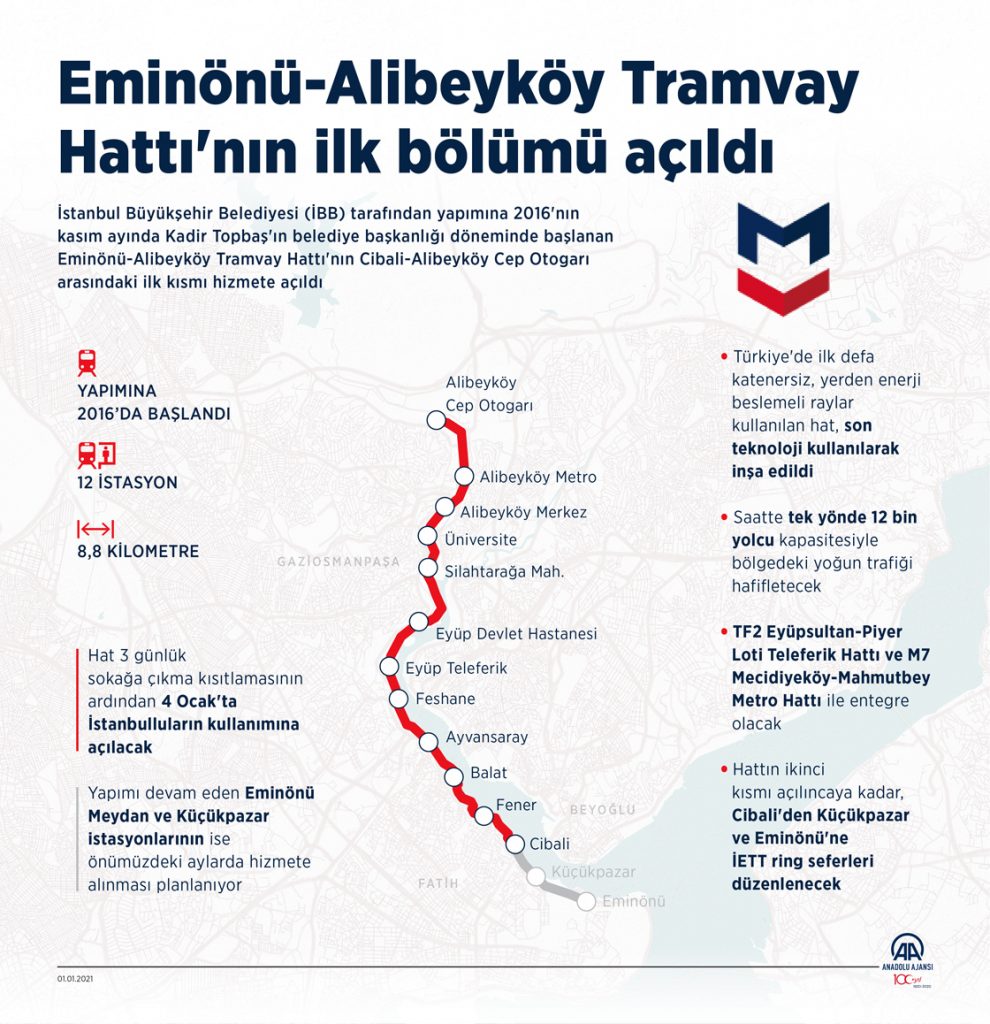 İstanbul Büyükşehir Belediyesi (İBB) tarafından yapımına 2016’nın kasım ayında Kadir Topbaş’ın belediye başkanlığı döneminde başlanan T5 Eminönü-Alibeyköy Hattı’nın 12 istasyon ve 8,8 kilometreden oluşan Cibali-Alibeyköy Cep Otogarı arasındaki ilk kısmı tamamlandı.
