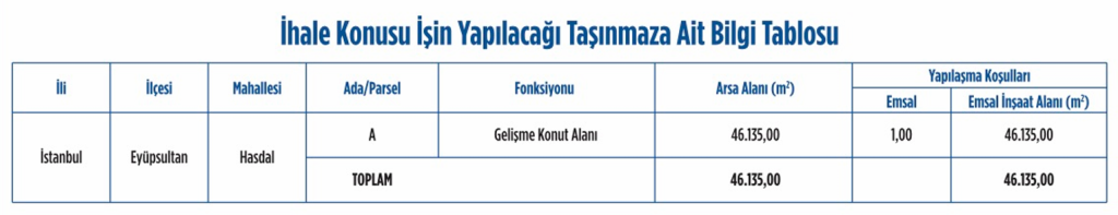 “Şirketimiz ile Toplu Konut İdaresi Başkanlığı (TOKİ) arasında imzalanan İşbirliği protokolü çerçevesinde gerçekleştirilmesi planlanan İstanbul Eyüpsultan Hasdal 1. Etap Arsa Satışı Karşılığı Gelir Paylaşımı İşi ihalesinin 1. oturumu 22.01.2026 Perşembe günü saat 11:00’de yapılacaktır.”