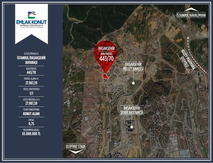 443/70 ada ve parseldeki 27.989,59 metrekarelik konut alanı imarlı, 0.75 emsali olan arsanın muhammen değeri 65 milyon TL olarak belirlendi.