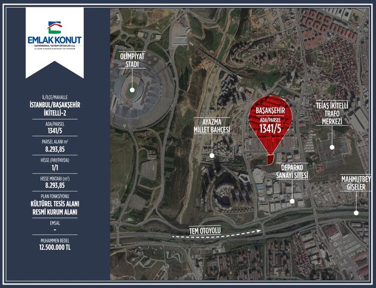 Türkiye’nin en büyük gayrimenkul yatırım ortaklığı olan Emlak Konut GYO, Kamuoyu Aydınlatma Platformu’na (KAP) gönderdiği yazılı açıklamada İstanbul’daki Ataşehir, Kartal ve Başakşehir’deki farklı ölçülerde toplamda 85 bin 917 metrekare büyüklüğe ulaşan 12 arsasını toplam 256 milyon 750 bin lira muhammen bedelle 7 ocak 2020 salı günü ihaleyle satışa sunacağını bildirdi.
