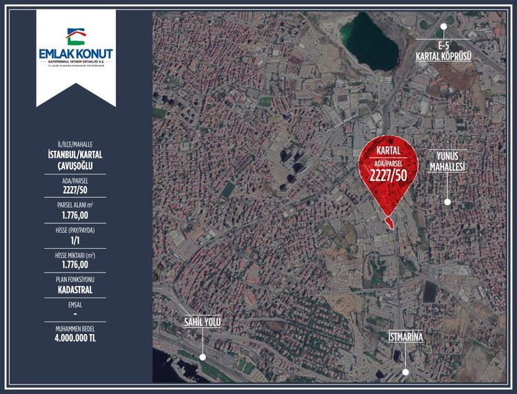 2227/50 ada ve parseldeki 1.776 metrekarelik kadastral imarlı arsanın muhammen değeri 4 milyon TL olarak belirlendi.