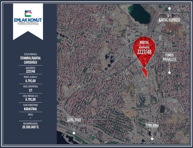 2227/48 ada ve parseldeki 8.793 metrekarelik kadastral imarlı arsanın muhammen değeri 20 milyon 500 bin TL olarak belirlendi.