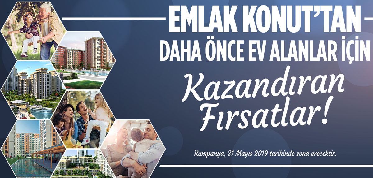 Türkiye’nin en büyük gayrimenkul yatırım ortaklığı olan Emlak Konut’un projelerinden daha önce ev alanlar ve borçlarını ödemeye devam edenler için “Kazandıran Fırsatlar” başlığıyla devreye alınan ve 31 mayıs 2019 tarihine devam edecek kampanya kapsamında borcunun tamamını veya bir kısmını erkenden ödeyenlere cazip indirimler sunuluyor.