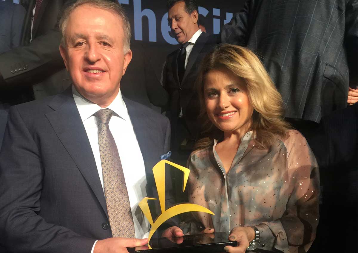 Finans Şehir ödülünü, Sinpaş GYO Yönetim Kurulu Başkan Vekili Ahmet Çelik ve Sinpaş GYO Genel Müdürü Seba Gacemer birlikte aldılar.
