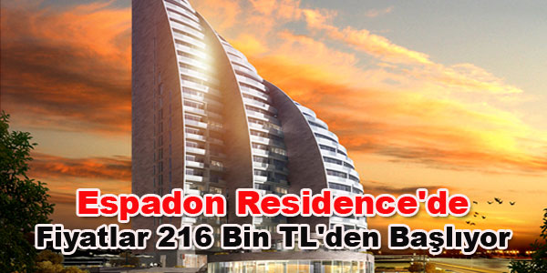 50 milyon lira yatırım bütçesi olan Espadon Residence, 136 konut ve 11 ticari bölümden oluşuyor. 20 katlı 101 metre yüksekliğindeki proje üç blok halinde tek parça olarak uzanıyor.Projede daire fiyatları 216 bin TL'den başlıyor. 27 bin 546 metrekare inşaat alanından oluşan projede 11 mağazanın yer aldığı bir cadde de tasarlanıyor. Projede stüdyo, 1+1, 1,5+1 ve 2+1 olmak üzere farklı daire tipleri mevcut. Projede yer alan dairelerin büyüklükleri ise 59 ile 160 metrekare aralığında değişiyor. Ayrıca projedeki daireler birleştirilerek 7+1 konut oluşturulabiliyor. Projede metrekare fiyatları 3 bin 750 liradan başlarken, ortalaması ise 4 bin 500 lirayı buluyor.