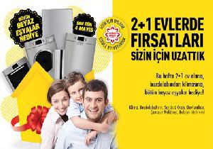 2+1 evler için uygulanan beyaz eşya bizden kampanyası ile dikkat çeken emlak fırsat sitesinin, 2+1 ev satın alanlar için uyguladığı kampanyada klima, buzdolabı, fırın, set üstü ocak, davlumbaz, çamaşır makinesi ve bulaşık makinesinden oluşan beyaz eşya seti hediye ediliyor.