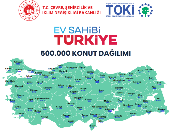 Toplu Konut İdaresi Başkanlığı tarafından 2025 Yılı 500 Bin Sosyal Konut Projesi