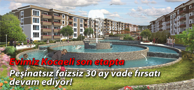 Evimiz Kocaeli’nde, peşinatsız faizsiz 30 ay taksitle ev sahibi olma fırsatı!
