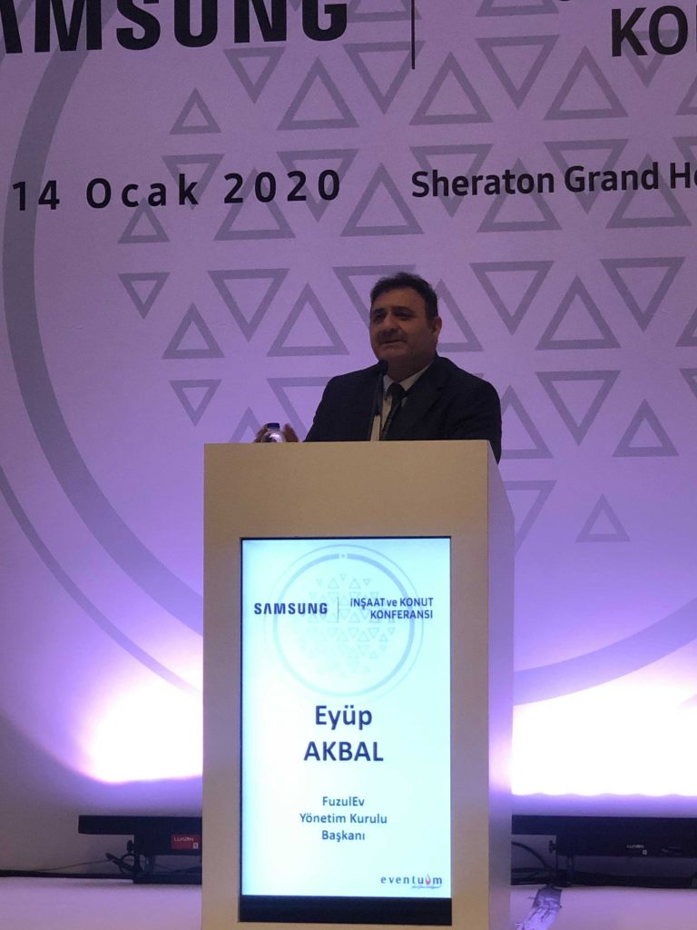 14 ocak 2020 salı günü Ataşehir’deki Sheraton Grand Hotel’de Eventuum tarafından bu yıl 8’incisi düzenlenen Samsung İklimlendirme Çözümleri İnşaat ve Konut Konferansı’nda bir konuşma yapan Fuzul Grup Yönetim Kurulu Üyesi ve FuzulEv Yönetim Kurulu Başkanı Eyüp Akbal, gayrimenkul pazarını canlandıracak finansa erişim için alternatif bir model olan FuzulEv, faizsiz, peşinatsız, kredisiz ev almaya olanak sağlayan FPK modelinden bahsetti. Ayrıca bu sektörün 2020 yılında daha da büyüyeceğini ve göz önünde olacağını söyleyen Akbal, sektörün regülasyon çalışmaları ile ilgili heyecanlı ve istekli olduklarını sözlerine ekledi.
