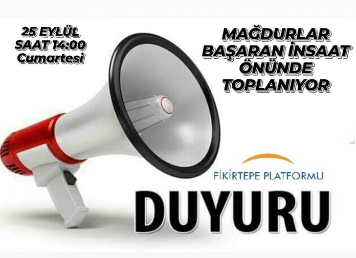 25 eylül cumartesi günü Başaran İnşaat’ın Mina Towers projesi satış ofisinde toplanan mağdur Fikirtepeliler adına bir açıklama yapan Fikirtepe Platformu, Çevre ve Şehircilik Bakanlığı’na seslendi.