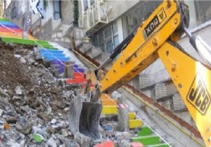 Salı Pazarı Yokuşu, dün dozer sesleriyle çınladı. Beyoğlu Belediyesi dozerleri, Fındıklı'dan başlayarak rengarenk boyanmış merdivenlerin basamaklarını tek tek yıkmaya başladı.
