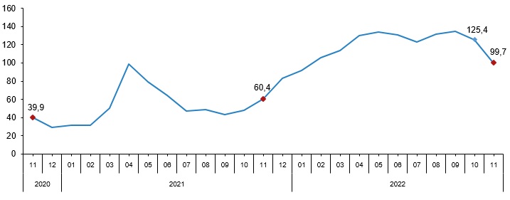 Ciro endeksleri yıllık değişim oranları (%), Kasım 2022