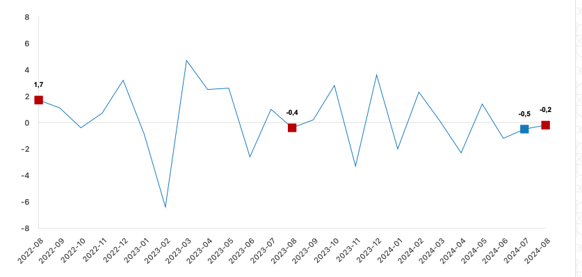 Hizmet üretim endeksi aylık değişim oranı (%), Ağustos 2024