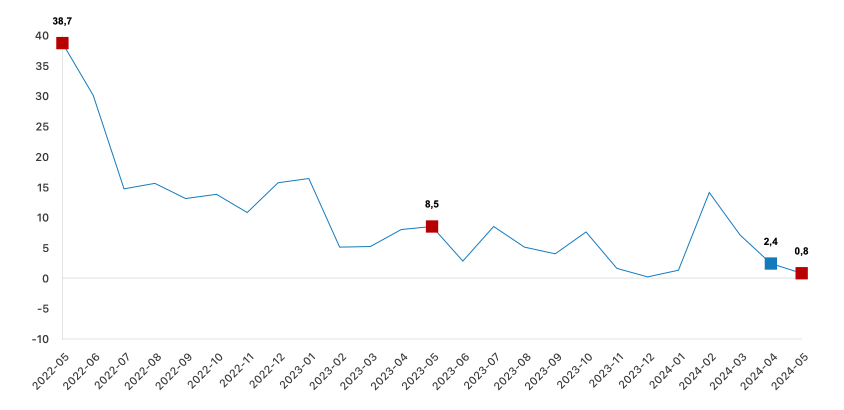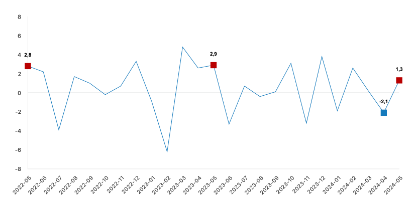 Hizmet üretim endeksi aylık değişim oranı (%), Mayıs 2024
