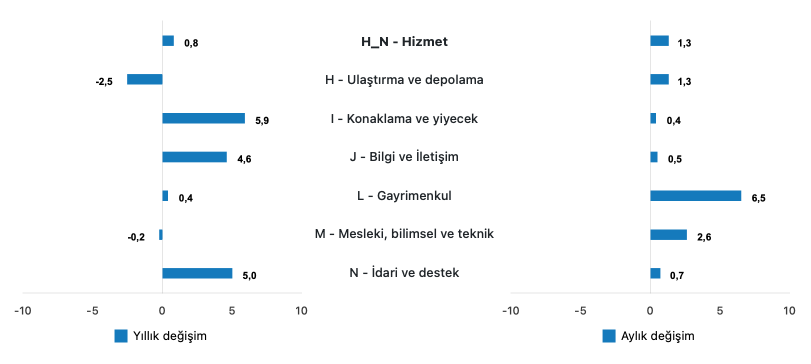 Hizmet üretim endeksi (2021=100) 2024 yılı Mayıs ayında bir önceki yılın aynı ayına göre %0,8 arttı. Aynı ayda ulaştırma ve depolama hizmetleri %2,5 azaldı, konaklama ve yiyecek hizmetleri %5,9 arttı, bilgi ve iletişim hizmetleri %4,6 arttı, gayrimenkul hizmetleri %0,4 arttı, mesleki, bilimsel ve teknik hizmetler %0,2 azaldı, idari ve destek hizmetleri ise %5,0 arttı.