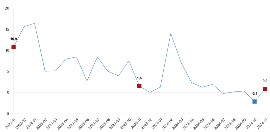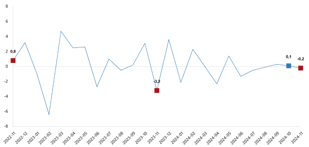 Hizmet üretim endeksi aylık değişim oranı (%), Kasım 2024