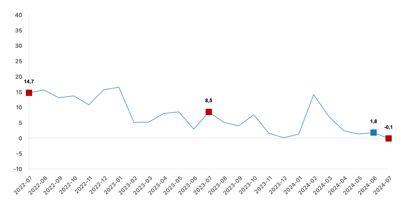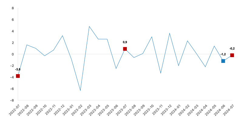 Hizmet üretim endeksi aylık değişim oranı (%), Temmuz 2024