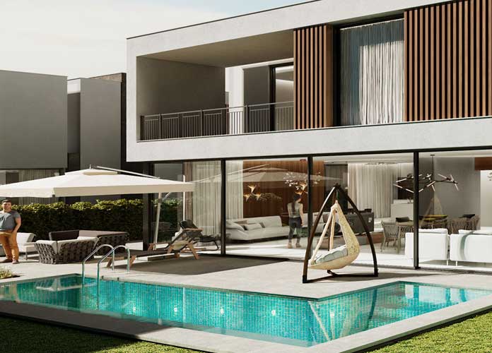 - Villalarda geniş teraslar, yeraltı yolları, kış bahçesi