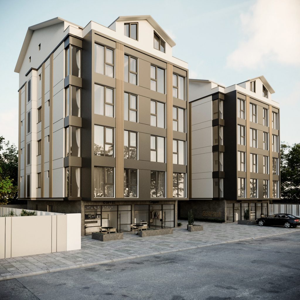 Bursa’nın merkez Nilüfer ilçesi Akçalar mahallesinde PropertyTR ve Reva Yatırım ortaklığıyla geliştirilen Genesis 1 projesi zemin üzerine dört katlı iki bloktan meydana geliyor.