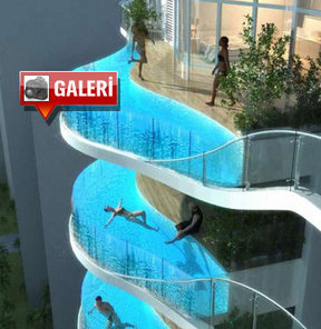 Hong Kong'lu mimar James Law'un Hindistan'daki inşaat grubu Wadhwa Group için hazırladığı bir çizimde yer alan gökdelende her dairenin balkon yerine birer havuz bulunuyor.