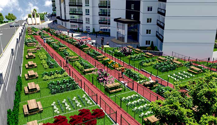 - Her daire için ayrılmış ve su tesisatı çekilmiş hobi bahçesi alanı