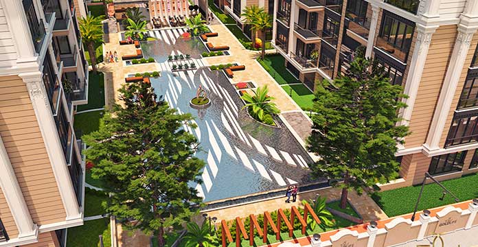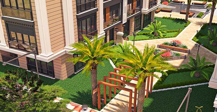 - Peyzajlı yeşil alanlar, 1 kilometrelik yürüme yolu, dinlenme alanları, süs havuzu