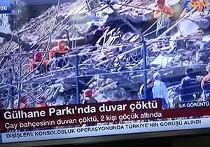 Gülhane Parkı'nın sahile yakın kısmında bulunan çay bahçesinin duvarı çöktü. 2 kişinin enkaz altında kaldığı bildirildi. Olay yerine çok sayıda ambulans ve itfaiye ekibi sevk edildi.
