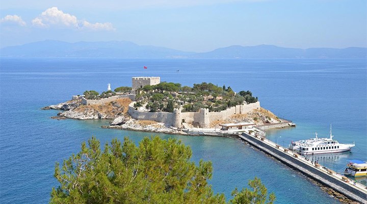 Kuşadası ilçesi, Hacıfeyzullah mahallesinde bulunan Güvercinada Kalesi, Kuşadası Körfezi’nin ağzında, limanı koruyan bir konumda yapılmıştır.