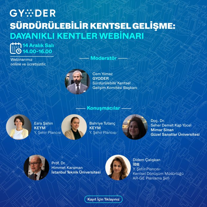 Gayrimenkul Yatırımcıları Derneği (GYODER) tarafından düzenlenen webinar etkinliklerinde “Sürdürülebilir Kentsel Gelişme: Dayanıklı Kentler” ana teması ele alınacak.