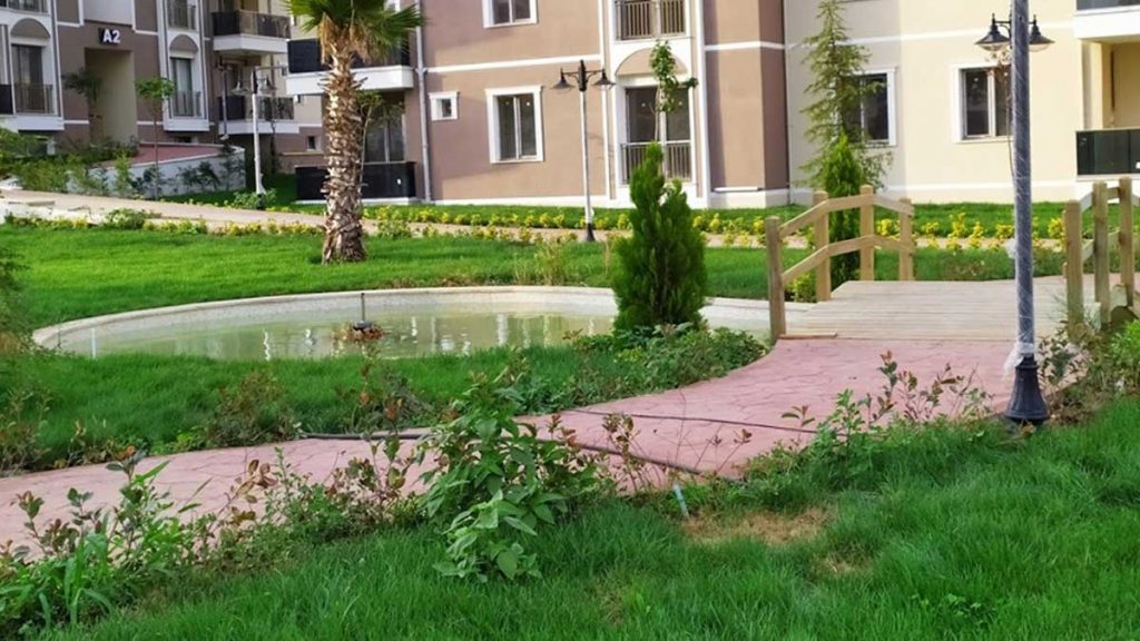 - 6 bin metrekarelik peyzajlı yeşil alan, kamelyalar, süs havuzu