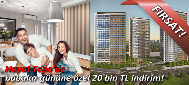 Özak GYO Hayat Tepe projesinde babalar gününe özel 20 bin TL'lik indirim yapıyor. Özel indirimin yanı sıra projede konut satın almak isteyen müşterilere özel hediyeler de sunulacak.