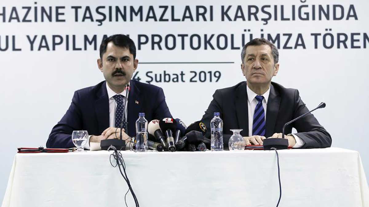 Protokol kapsamında, MEB’in okul ihtiyacı olan illeri belirlediğini, Bakanlığın da toplamda 2 bin dersliğin yaptırılması karşılığında, arsa karşılığı inşaat yöntemiyle Hazine taşınmazlarını yüklenicilere devrettiklerini dile getiren Murat Kurum; MEB’in yaptırılacak okulların tip projelerini ve maliyetlerini belirleyeceğini, Çevre ve Şehircilik Bakanlığı olarak kendilerinin de imar planlarında ticaret, konut ve sanayi alanı olarak ayrılmış hazine arazilerini okul yapımı karşılığında yüklenicilere devredeceklerini söyledi.