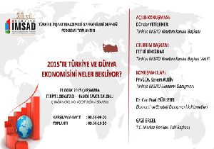 Türkiye İMSAD Başkanı Dündar Yetişener’in açılış konuşmasını yapacağı toplantıda, Merkez Bankası eski Başkanı Gazi Erçel, ekonominin 2015 yılına ilişkin beklenti ve öngörülerini paylaşacak.