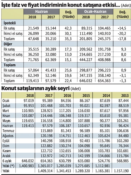 Faiz ve fiyat indirimi asıl etkisini haziranda gösterdi. Hazirandaki toplam konut satışında geçen yılın aynı ayına göre yüzde 22 artış gerçekleşti.