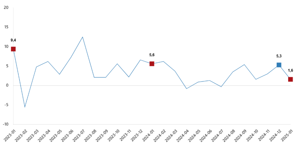 Toplam ciro aylık değişim oranı(%), Ocak 2025